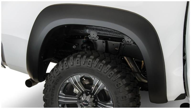 Fender Flares Extend-A-Fender Style 2Pc Rear You've equipped your vehicle with oversize wheels and tires for serious off-road traction and clearance. Now you need extra tire coverage to protect your rig's body and maybe even comply with local laws. Bushwacker Extend-A-Fender Flares deliver premium-grade protection and style matched to oversized tires, yet as tough as they are, they go on easily with no drilling required. You can install them in minutes and enjoy them for years. Our exclusive Dura-Flex 2000 material is designed for added durability and flexibility with built-in UV protection. Your Extend-A-Fender Flares resist chalking, cracking, and warping, whether you leave them with their OEM-style matte black finish or paint them for a totally personalized look. Either way, your truck will look factory-equipped for your off-road tires. Extend-A-Fender Flares go on easy, perform tough, and look great. Smooth, contoured look, these flares provide more protection than our OE Style Flares Tire coverage varies with vehicle: 1.25 In. - 3 In. Whether on-road or off, our heavy-duty hardware holds the flares securely in place 100% UV protected smooth matte black smooth finish can be easily painted Precision engineered for a perfect fit and made of durable, yet flexible Dura-Flex 2000 ABS material