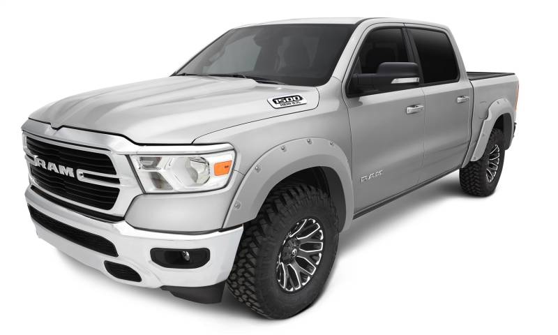 Bushwacker's rugged, iconic Pocket Style Fender Flares allow for more tire coverage and more clearance for trucks and SUVs while protecting the vehicle from dirt and debris. These flares are now available pre-finished to match the paint on your new Ram, plus they have the edge trim and stainless steel hardware pre-installed for quick and easy installation and a perfect fit . Made from sturdy Dura-Flex 2000 material, these flares are warp-resistant and tailor made for each application. Despite their bolted-on appearance, these flares install easily with minimal drilling for a secure fit. And since they're ready to install out of the box, there's no waiting on paint, and no hassle with installation.