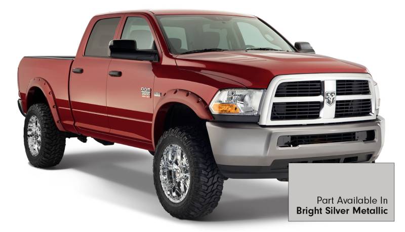 Bushwacker's rugged, iconic Pocket Style Fender Flares allow for more tire coverage and more clearance for trucks and SUVs while protecting the vehicle from dirt and debris. These flares are now available pre-finished to match the paint on your new Ram, plus they have the edge trim and stainless steel hardware pre-installed for quick and easy installation and a perfect fit . Made from sturdy Dura-Flex 2000 material, these flares are warp-resistant and tailor made for each application. Despite their bolted-on appearance, these flares install easily with minimal drilling for a secure fit. And since they're ready to install out of the box, there's no waiting on paint, and no hassle with installation.