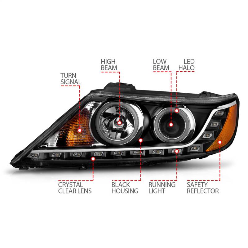 Anzo USA Projector Headlight Set w/CCFL Halo Black for Kia Sorento 111248