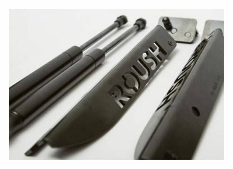 You've spent the time getting your engine ready for a show. Now take the final step in showcasing your engine by adding/installing a set of ROUSH Mustang Hood Struts to your 2005-2014 Mustang. These Mustang gas-charged hood struts eliminate the need for the factory hood-prop rod and lift the hood to a greater angle allowing easier view on the entire engine compartment and allowing more light to shine in to showcase your pride-and-joy, the Mustang engine. ROUSH hood struts use the factory OEM attachment points and no drilling required. The kit contains black e-coated stainless steel brackets with the ROUSH logo laser cut into the brackets and heavy duty gas-charged struts. These ROUSH Mustang hood struts fit all 2005-2014 Mustangs including the GT, V6, ROUSH, Shelby, Boss, Bullitt, Saleen, and SMS. These gas-charged struts are designed and engineered to work with the factory hood design and weight.