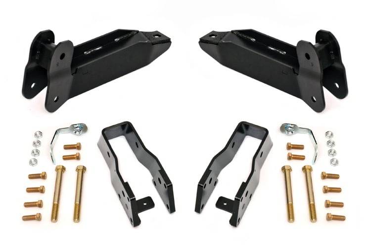 Our new Dodge 2500/3500 Control Arm Drop Bracket System improves driveline geometry. By utilizing a set of beefy drop brackets we've eliminated the steep mounting angle often seen on 5in and larger kits. By mounting your stock arms to the reduced angle provided by our Drop Bracket System, you'll gain better ride quality and better caster angle for increased drivability.