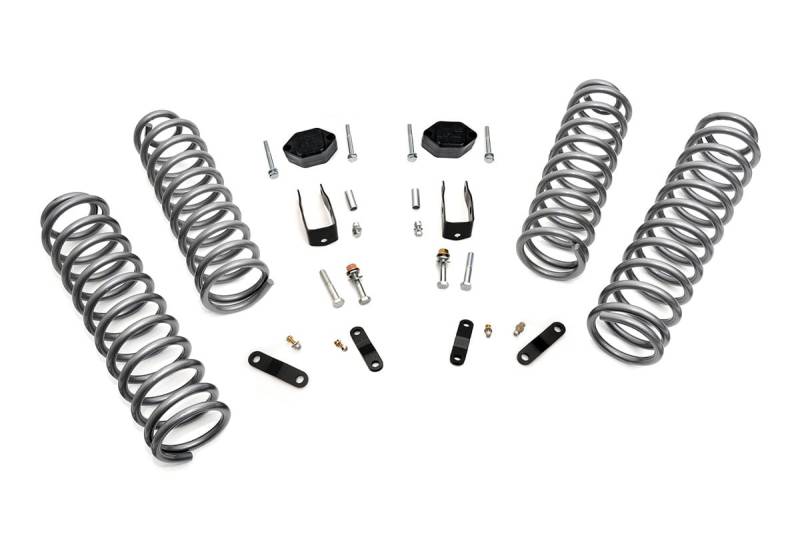 Elevate your Jeep's off-road game and style with Rough Country's 2.5" Suspension Lift Kit. Perfect for larger wheels and tires, this kit enhances your vehicle's ground clearance and gives it a rugged, attention-grabbing look on and off the trail.Lifted Front & Rear Coil Springs: Achieve a taller stance while maintaining factory-like ride quality. These coil springs are tuned to the OEM spring rate for smooth handling whether you're tackling rocky terrain or cruising highways.Custom Shock Options: Select from nitrogen-charged N3 shocks, V2, M1 Monotube, or premium M1R shocks for a ride tailored to your off-road needs and preferences.Easy Installation: Designed for straightforward installation, this kit includes everything you need for a seamless upgrade.Built to Last: With Rough Country's Limited Lifetime Replacement Guarantee, this suspension lift kit is built to endure the toughest trails and environments.Upgrade your Jeep today and experience superior off-road capability and unmatched style with Rough Country's 2.5" Suspension Lift Kit!