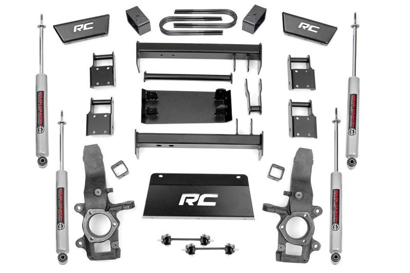 - Hassle-Free Installation: Features a 100% bolt-on design for quick and easy setup with common tools.\ Boosted Ground Clearance: Gain extra ride height to tackle rough terrain with added confidence.\ Level Stance Upgrade: Eliminates factory rake by leveling the front with the rear for a more aggressive profile.\ No Modifications Needed: Installs cleanly with no cutting, drivetrain, or exhaust changes required.\ Compatible with 35-Inch Tires: Gain the clearance you need to run up to 35-inch tires for a tougher stance and enhanced off-road capability.\ Includes Rough Country's N3 Shocks: Premium shocks deliver enhanced ride quality, superior damping, and increased stability for all-terrain comfort and performance..