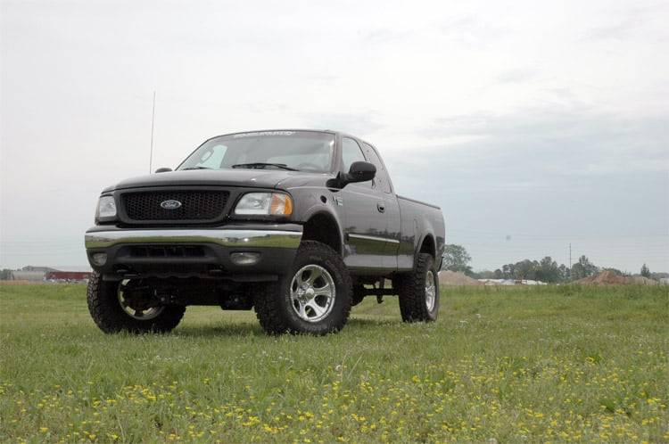 Transform your 1997-2003 Ford F-150 with Rough Country's 5-Inch Suspension Lift Kit, delivering a bold new look and the capability to dominate off-road terrain. This all-inclusive system is built for performance, durability, and aggressive stance, perfect for any adventure ahead.Achieve Aggressive Ride Height and Control: This kit includes heavy-duty lifted knuckles that provide the clearance needed to run up to 35-inch tires with proper wheel spacing. Differential drop brackets, sway-bar links, bump stop brackets, and torsion bar drop brackets help maintain factory-like ride quality by keeping components at optimal geometry.Built for Strength and Durability: A pair of high-strength front and rear steel crossmembers form the foundation of this lift, while Rough Country's fabricated rear blocks outclass traditional cast options for improved strength and long-term reliability on and off the trail. Engineered for Smooth Performance: Rough Country's premium N3 shocks are included, offering 10-stage variable valving, a high-pressure nitrogen charge, 18mm spring-loaded piston rods, and 54mm shock bodies. These features combine to deliver a smooth highway ride with firm off-road response.Peace of Mind Included: Rough Country backs this kit with a Limited Lifetime Replacement Guarantee, ensuring your suspension is ready for whatever comes next.
