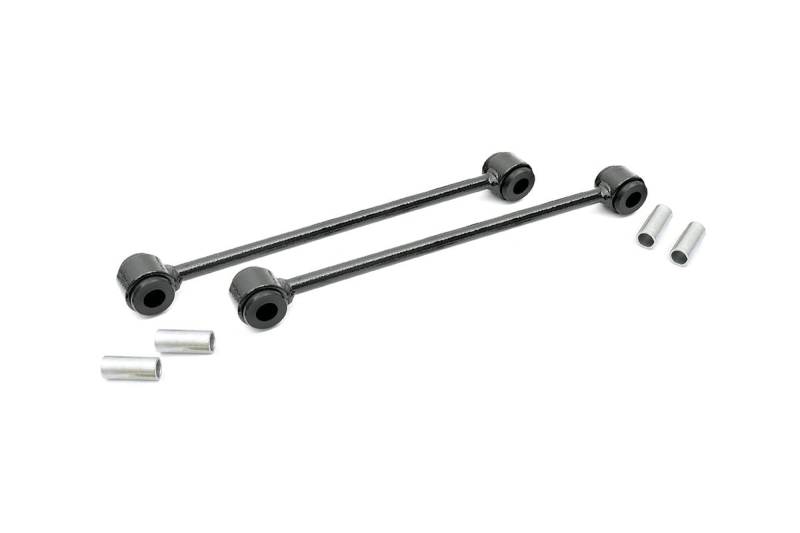 Superior Performance. Keep your Ford handling like a pro with Rough Country Rear Sway Bar End Links. These rear-end links ensure that all suspension geometry remains intact, so nothing gets out of hand when lifting your truck. Rough Country's Rear Sway Bar Links offer instant handling improvement and the ability to fine-tune your suspension for ultimate weight distribution. The Rough Country Rear Sway Bar Links are a replacement for stock sway bar links and will give you superior performance ride quality both on and off the trail.\ Heavy-Duty Reliability. Turn your truck into a solid off-roader with the heavy-duty Rough Country Rear Sway Bar Links. You don't have time for weak links when you're on the trail. And that's why Rough Country Rear Sway Bar Links are built to withstand the toughest driving conditions. Constructed from steel and a black powder-coat finish, our Rear Sway Bar End Links add strength and reliability to your Ford Super Duty.\ Easy Installation. Rough Country Rear Sway Bar End Links are the perfect upgrade for your truck. These rustproof steel bars will fit without requiring modifications or welding. They're designed as direct bolt-ons, so installation is quick and easy!\ Limited Lifetime Warranty. Rough Country's products are backed with a limited lifetime replacement warranty towards manufacturer defects. As such, the product is protected from structural and workmanship damage after the date of purchase. With our industry-leading warranty, give yourself peace of mind when using Rough Country's products!