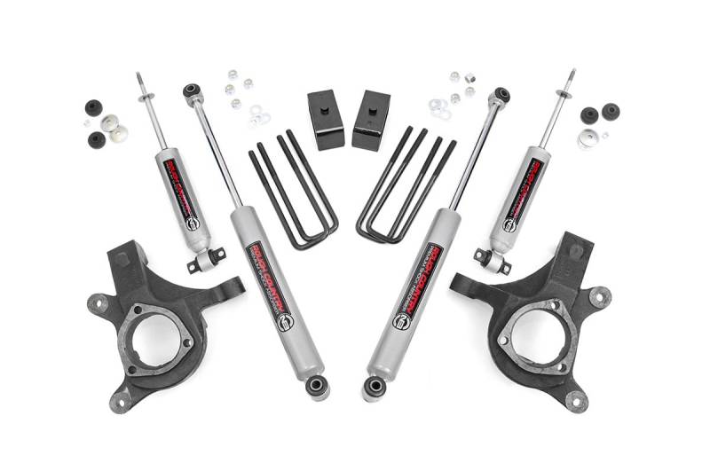 Aggressive Stance & Added Clearance: Level out your ride and eliminate factory rake with this complete lift kit. Front lifted knuckles and rear lift blocks deliver a bold, leveled look while clearing room for up to 31" tires.Off-Road Ready Performance: Boost ground clearance and tackle tough terrain with confidence. This kit is built to handle off-road abuse while preserving your vehicle's factory ride quality. Easy Bolt-On Installation: No cutting, no welding. The hassle-free, bolt-on design ensures a straightforward install with no modifications required.Ride Quality You Can Feel: This kit includes front and rear N3 shock absorbers featuring 10-stage velocity-sensitive valving. Specifically tuned for GM 1500 models, these nitrogen-charged shocks maintain a smooth, stock-like ride on pavement while offering responsive performance off-road.Customizable Shock Options: Want to fine-tune your ride? Upgrade to V2 Monotube or M1 Monotube shocks for even greater performance and control because the power to customize your ride is in your hands.