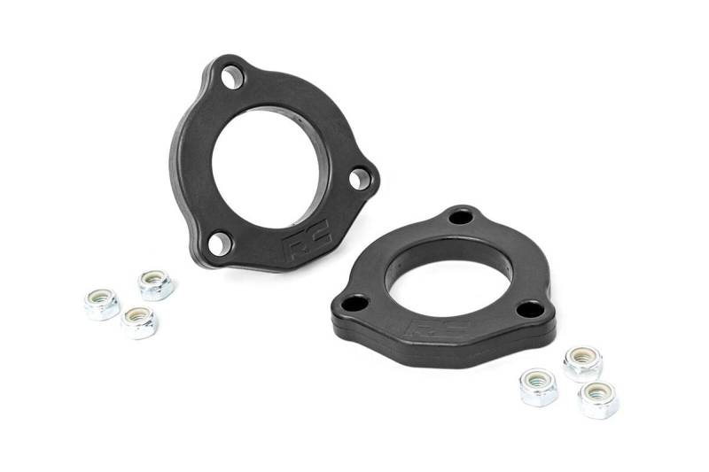 The all-new 2015 design for Chevy Colorado and GMC Canyon looks great right from the factory, but at stock height it still leaves something to be desired. Rough Country's new 1-inch Upper Strut Spacers are a little lift that goes a long way!Gain a more level look, while retaining a slight factory rake - perfect. Give your truck plenty of ride-height to run up to a 265/70/17 on factory wheels with our innovative spacer setup. This kit uses our durable upper strut spacer, offering lifted height without sacrificing ride quality or looks. with no strut disassembly required, this kit features a quick and easy 100% bolt-on installation procedure, and can be returned to stock at any time! Rough Country's 2015 Chevy Colorado / GMC Canyon 1-inch Upper Strut Spacers comes backed by our Lifetime Replacement Guarantee and Warranty Guard Protection for new model vehicles.\ \