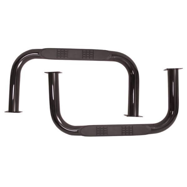 Nerf Bars, Black; 55-75 Jeep CJ5 Rugged Ridge Nerf bars are a classic addition to any Jeep. They not only have great off-road styling, but they give you a firm step up into your Jeep, plus some protection from debris. Features a black powder-coated .07 in. steel for a tough, chip-resistant finish. Include UV-treated step pads and custom mounting brackets. Includes all necessary hardware.