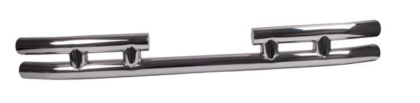 Double Tube Bumper, Rear, 3 Inch, Stainless; 87-06 Wrangler YJ/TJ All Rugged Ridge bumpers feature smooth ground welds for an unbelievable look and further rust protection. No other tubular bumper manufacturer goes to the expense of smooth grinding their welds. This exclusive smooth grind process virtually eliminates small weld pockets that never seem to get full paint coverage and tend to rust over time. Finally, all Rugged Ridge Bumpers feature welded end caps rather than plastic end caps. Gone are the days of constantly replacing those lost tube bumper end caps after a long day on the trail. Rear Bumpers have a larger 17 inch rear opening allowing the use of oversized tires (up to 31 inch) on the factory spare tire mount. This is a Rugged Ridge Exclusive! It also features an optional frame mounted hitch option that allows for lightweight towing (2,000lb towing weight, 200lb tongue weight capacity). Most other rear tube bumpers with integrated hitch boxes do not recommend towing therefore making the hitch box virtually useless.