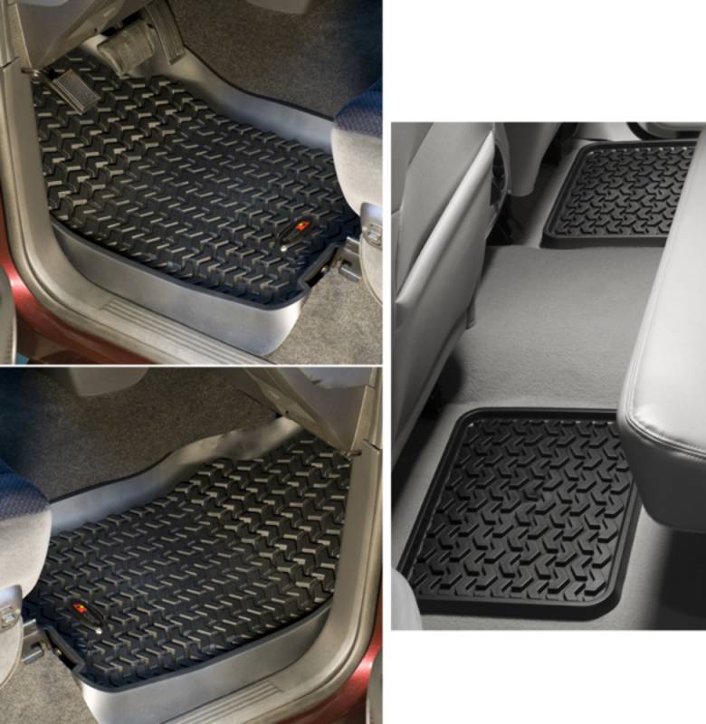 Rugged Ridge Floor liners provide complete protection for the cabin floor of your vehicle while keeping it looking factory fresh. Each liner is perfectly contoured to your vehicle's floor for precise secure fitment (floor hook attachment where applicable). The raised lip captures all spills, water and debris keeping your interior pristine. The Chevron-shape patented Deep Tread Technology channels liquid away from your shoes keeping them dry. Made of a durable OE-quality Thermoplastic material that can withstand the rigor of daily abuse. Backed by our Limited Lifetime Warranty. Patent 8,163,369, D627,285