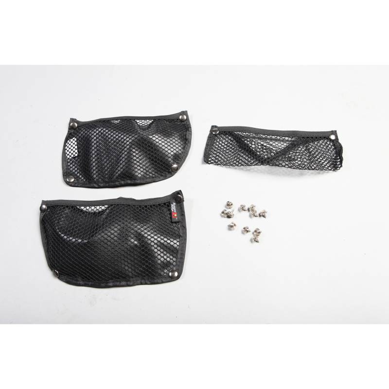 Door Console Trail Net Kit; 97-06 Jeep Wrangler TJ Keep your stuff where you need it with Rugged Ridge Trail Nets. These elastic nets attach to the glove box and dash and door and console areas with screw in snap heads and give you more storage in areas that are otherwise unused. Some drilling required.