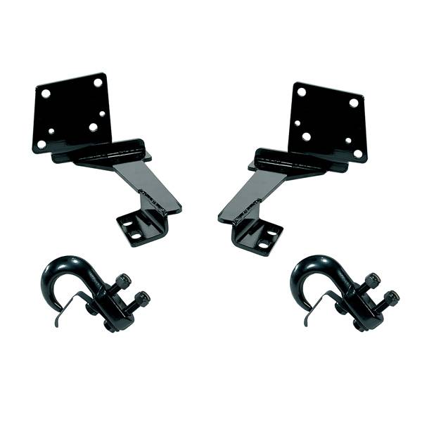 Tow Hook Kit, Front; 93-98 Grand Cherokee ZJ Don't get your Grand Cherokee stuck on trails without a Rugged Ridge Heavy Duty XJ or ZJ Tow Kit on the front. The inch thick steel plate is form bent for maximum strength then powder coated for protection from the elements. Includes mounting hardware. Sold as a pair.