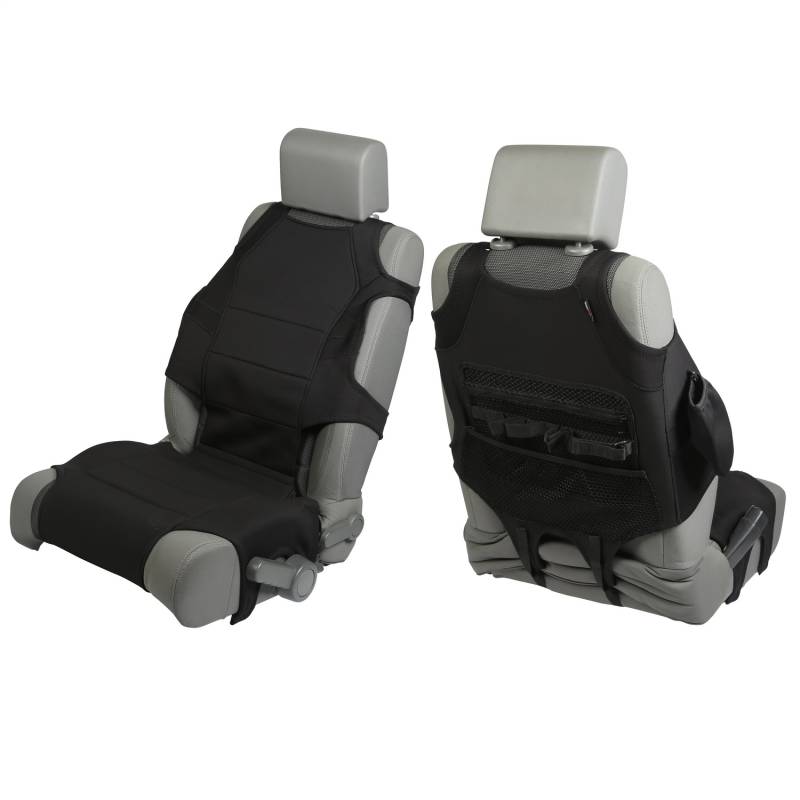 Protect your seats from the elements, wet bathing suits and spills while providing a great look. Each set of seat protectors include back pockets for rear storage as well as a removable cup holder. Cushioned center portion gives the Seat Protector a great look and provides you extra comfort on those long road trips. New solid color design further enhances the look of your Jeep. New design allows for use with or without side airbag equipped Wrangler.
