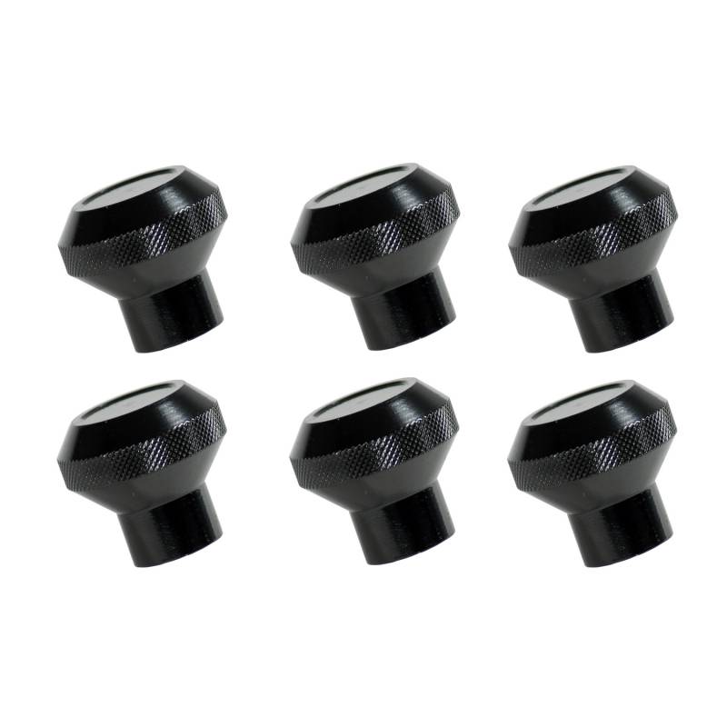 Dash Knob Kit, Billet Stainless Steel, Black; 76-86 Jeep CJ Dress up your interior and add a custom touch with these billet knobs. Billet stainless steel construction with a black powder coated finish. Sold as a set of 6 knobs.
