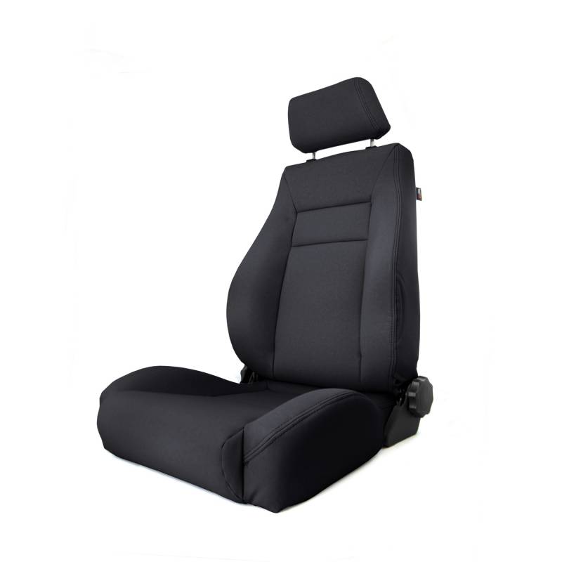 Ultra Seat, Front, Reclinable, Black Denim; 97-06 Jeep Wrangler TJ This full featured reclinable seat is designed for both comfort and strength. Luxuriously wrapped in a durable automotive grade vinyl fabric, this seat also comes with an adjustable and removable head rest.