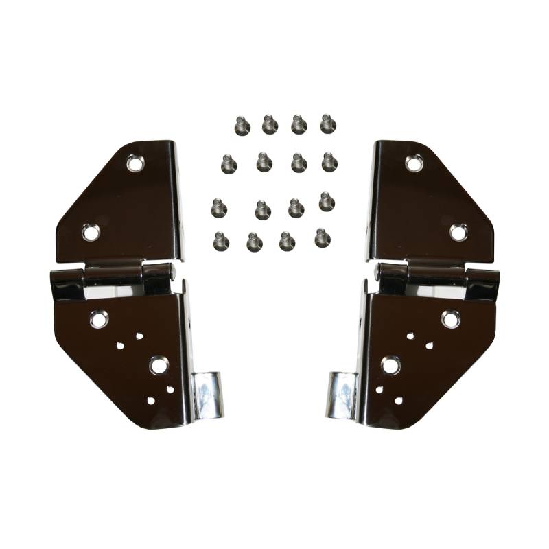 Windshield Hinge Kit, Stainless Steel; 76-95 Jeep CJ/Wrangler YJ Rugged Ridge windshield hinges and brackets are one of those pieces that really shows off an attention to detail. This pair of stainless steel windshield hinges install quickly and easily and add a little bit of flash. Sold as a matching left/right hand pair. Includes all necessary hardware.