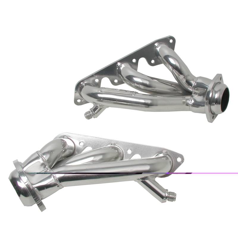 1999-2004 MUSTANG 3.8L V6 1-5/8 SHORTY HEADERS (POLISHED SILVER CERAMIC) These BBK Performance shorty tuned Length exhaust Headers are designed and constructed as direct fit replacements for all 99-04 Mustang V6 applications. Each header is manufactured with 1-5/8" CNC mandrel bent tubing that offers unrestricted exhaust flow for increased horsepower and torque over factory OEM manifolds. BBK tuned Length headers offer improved scavenging waves for better combustion, which leads to improved performance and fuel economy over stock or equal Length headers. As with all BBK Performance exhaust headers they feature a 3/8" laser cut exhaust flange for additional strength and a guaranteed leak free fit. All headers are robotically and precision hand welded and then pressure tested to ensure years of reliability and performance in the real world. All BBK exhaust headers are available in a titanium ceramic or polished silver ceramic coated finish and include new exhaust header gaskets, header bolts and hardware to complete the installation. Polished Silver Ceramic Finish - 50 State Legal CARB approved - Direct bolt On Installation - New Gaskets And Hardware Included
