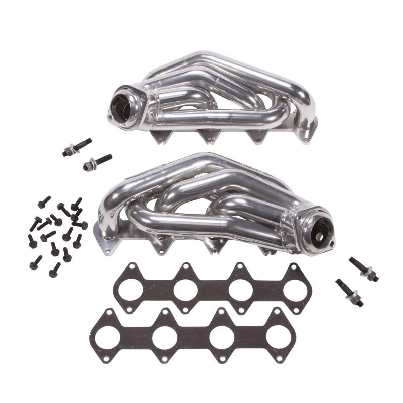 2005-2010 MUSTANG GT 1-5/8 SHORTY TUNED LENGTH HEADERS (POLISHED SILVER CERAMIC) These BBK Performance shorty tuned Length exhaust Headers are designed and constructed as direct fit replacements for all 2005-10 Mustang GT applications. Each header is manufactured with 1-5/8" CNC mandrel bent tubing that offers unrestricted exhaust flow for increased horsepower and torque over factory OEM manifolds. BBK tuned Length headers offer improved scavenging waves for better combustion, which leads to improved performance and fuel economy over stock or equal Length headers. As with all BBK Performance exhaust headers they feature a 3/8" laser cut flange for additional strength and a guaranteed leak free fit. All headers are robotically and precision hand welded and then pressure tested to ensure years of reliability and performance in the real world. All BBK exhaust headers are available in a high temp titanium ceramic or polished silver ceramic coated finish and include new exhaust header gaskets, header bolts and hardware to complete the installation. Direct Fit Replacement - 50 State Legal - CARB Approved - Polished Silver Ceramic Finish