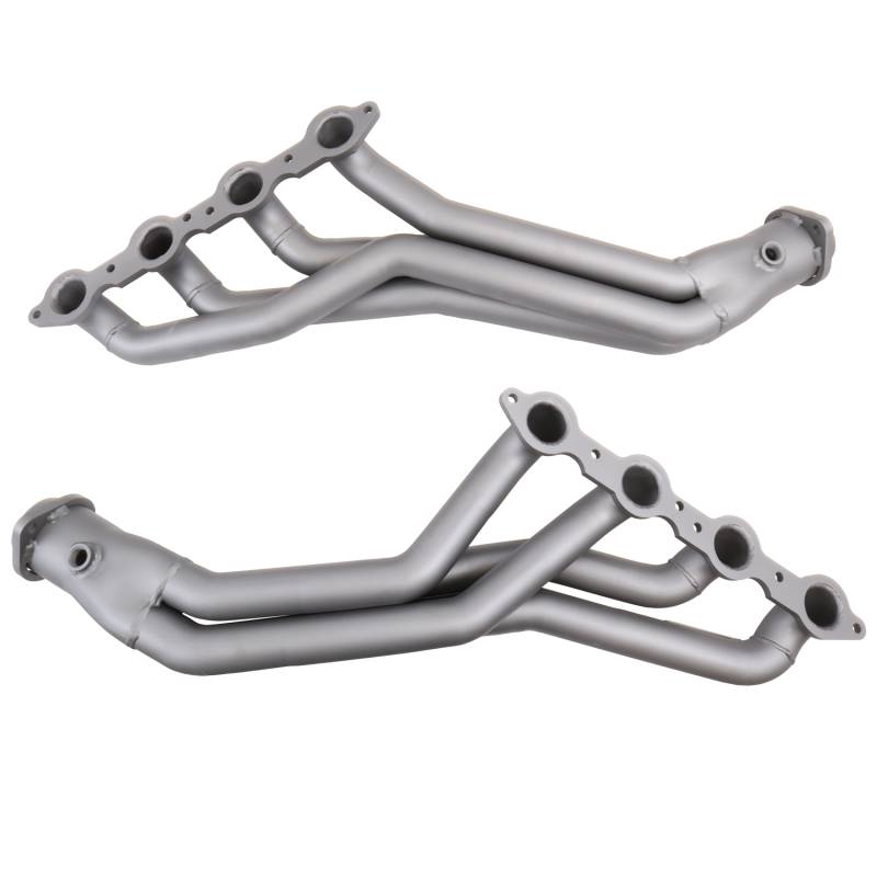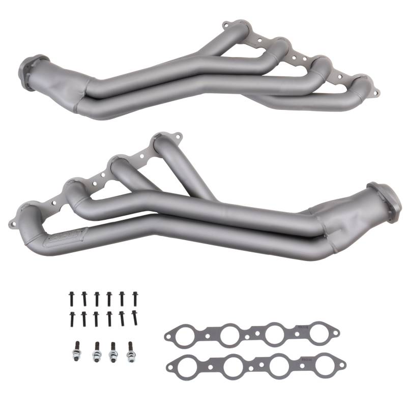 1998-2002 GM LS1 F BODY 1-3/4 LONG TUBE HEADERS (TITANIUM CERAMIC) BBK Performance full length long tube exhaust headers offer unsurpassed quality and fitment using top quality materials and American craftsmanship. Every long tube exhaust header system is hand built with CNC mandrel bent tubing for unrestrictive exhaust flow and maximum performance, 3/8" laser cut flanges, patented scavenging collector design and gasket less ball and socket connectors for easy installation. Every exhaust header has been designed specifically for your application to get the most horsepower and torque out of the engine. BBK long tube exhaust headers outperform the competition in quality value and performance. All headers are a direct fit bolt on replacement when used with the correct matching mid-pipes which are available with high flow catalytic converters. Our decades of exhaust design and experience make BBK Performance your number one choice for late model American car and truck performance exhaust. Titanium Ceramic Finish - 1-3/4 CNC Mandrel Bent Primary's For Maximum Exhaust Flow - Direct Bolt on