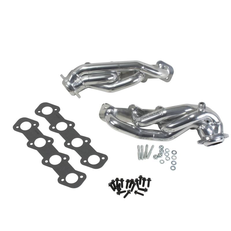 99-03 FORD F150 97-02 FORD EXP 5.4L 1-5/8 SHORTY HEADERS (POL SILVER CERAMIC) These BBK Performance shorty tuned Length exhaust Headers are designed and constructed as direct fit replacements for all 99-04 Ford 5.4L F150 truck applications. Each header is manufactured with 1-5/8" CNC mandrel bent tubing that offers unrestricted exhaust flow for increased horsepower and torque over factory OEM manifolds. BBK tuned Length headers offer improved scavenging waves for better combustion, which leads to improved performance and fuel economy over stock or equal Length headers. As with all BBK Performance exhaust headers they feature a 3/8" laser cut flange for additional strength and a guaranteed leak free fit. All headers are robotically and precision hand welded and then pressure tested to ensure years of reliability and performance in the real world. All BBK exhaust headers are available in a bright chrome or polished silver ceramic coated finish and include new exhaust header gaskets, header bolts and hardware to complete the installation. 50 State Legal - CARB APPROVED Titanium Ceramic Finish - All Required Gaskets and Hardware Included - Direct Bolt-On for Easy Installation - 50 State Legal