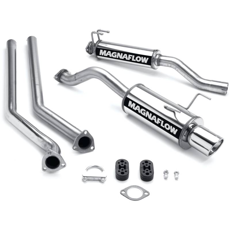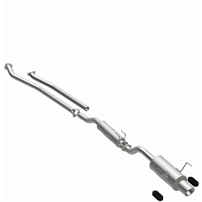 Street Series Stainless Cat-Back System The MagnaFlow 2002-2005 Acura RSX Street Series Cat-Back Performance Exhaust System brings out the personality of your 2.0L 2002-2005 Acura RSX with our signature resonant, powerful engine tone and dyno-proven performance. Thanks to its fast-flowing, mandrel bent 2.25in. main piping and 2 Straight-Through mufflers ending in a Single Straight Passenger Side Rear exit with 4in. Polished Welded-On Double Wall Angle Cut Rolled Edge tips, this Acura RSX exhaust kit has the performance chops to match its sporty sound and appearance. Upgrade your ride to the next level with an exhaust that has the pipes to put other Acura RSX's to shame. With this system your vehicle will be producing Moderate exterior and Mild interior sound levels while leaving other cars and trucks feeling envious at every stoplight. Exhaust kit 15783 features a cat-back layout that replaces your ride's stock exhaust components from near the catalytic converter on back. Extensive 3D scanning during development has resulted in a direct-fit design that you can easily install yourself. 15783 is produced using CNC precision robotic manufacturing techniques and is backed by MagnaFlow's 1-year limited finish warranty and limited lifetime construction warranty. Durable corrosion-resistant stainless steel construction CNC precision robotic manufacturing techniques Dyno-proven performance