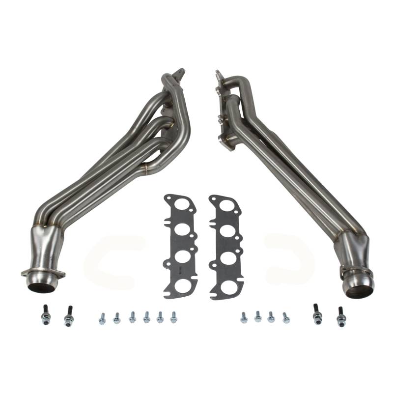2011-2023 MUSTANG 5.0 1-3/4 LONG TUBE EXHAUST HEADERS (304 STAINLESS) BBK Performance full length long tube exhaust headers offer unsurpassed quality and fitment using top quality materials and American craftsmanship. Every long tube exhaust header system is hand built with 1-3/4 inch CNC mandrel bent 304 Stainless tubing for unrestrictive exhaust flow, maximum performance and long life, 3/8" laser cut flanges, patented scavenging collector design and gasket less ball and socket connectors for easy installation. Every exhaust header has been designed specifically for your application to get the most horsepower and torque out of the engine. BBK long tube exhaust headers outperform the competition in quality value and performance. All headers are a direct fit bolt on replacement when used with the correct matching mid-pipes which are available with high flow catalytic converters. Our decades of exhaust design and experience make BBK Performance your number one choice for late model American car and truck performance exhaust. Fits Automatic & Manual Trans - Includes New Gaskets And Hardware For Installation - 304 Stainless Steel