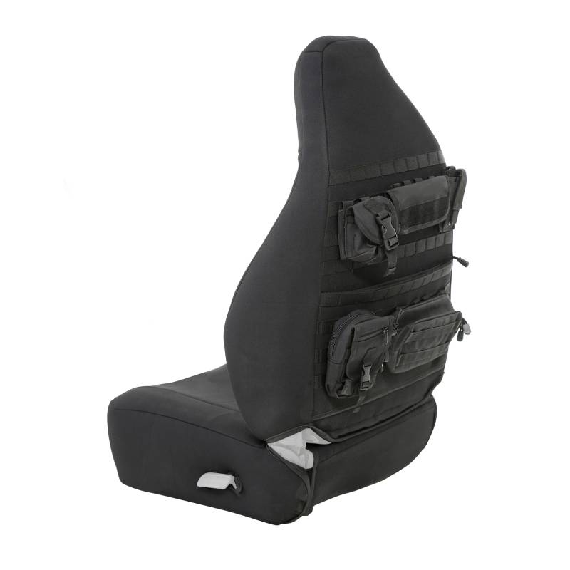 Smittybilt'(TM)S New G.E.A.R. Custom Fit Seat Covers Are A Great Place To Store First Aid Supplies, Flashlights, Matches, And Other Essentials Where They Are Easy To Access In Your Jeep Wrangler. Crafted From 600 Denier Ballistic Nylon, The Waterproof G.E.A.R. Seat Covers Are Fitted With Zippered Map Pockets, Molle Pouches, And Webbing To Lash Even More Gear To Your Jeep.