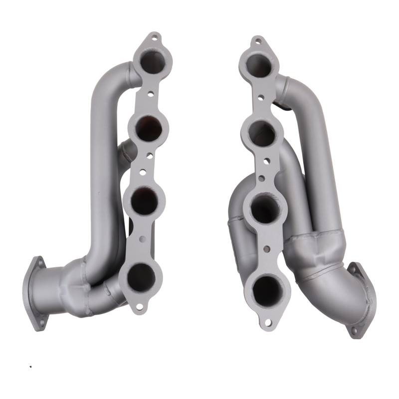 2010-15 CHEVROLET CAMARO SS 6.2 LS3/L99 1-3/4 SHORTY HEADERS (TITANIUM CERAMIC) These BBK Performance shorty tuned Length exhaust Headers are designed and constructed as direct fit replacements for all GEN 5 Camaro 2010-15 LS3 and L99 applications. Each header is manufactured with 1-5/8" CNC mandrel bent tubing that offers unrestricted exhaust flow for increased horsepower and torque over factory OEM manifolds. BBK tuned Length headers offer improved scavenging waves for better combustion, which leads to improved performance and fuel economy over stock or equal Length headers. As with all BBK Performance exhaust headers they feature a 3/8" laser cut flange for additional strength and a guaranteed leak free fit. All headers are robotically and precision hand welded and then pressure tested to ensure years of reliability and performance in the real world. All BBK exhaust headers are available in a titanium ceramic or polished silver ceramic coated finish and include new exhaust header gaskets, header bolts and hardware to complete the installation. Titanium Ceramic Finish - New Gaskets and Hardware Included - Direct Bolt-On for Easy Installation - 1-3/4" Primaries for Maximum Exhaust Flow