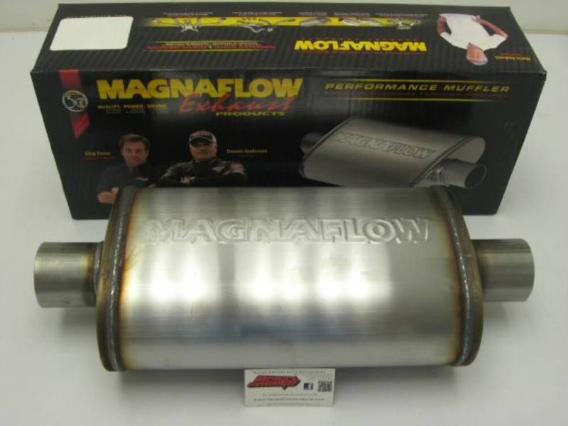 Straight-Through Performance Muffler; 2.5in. Center/Center; 5x14x8 Body The MagnaFlow 5 X 8in. Oval Straight-Through Performance Exhaust Muffler 12216 is engineered to enhance your ride with a healthy helping of our signature exhaust sound and dyno-proven performance thanks to its free-flowing straight-through perforated stainless steel core wrapped in stainless steel mesh and acoustic fiber fill. The reversible, universal 2.5/2.5in. diameter inlet/outlet Straight-Through layout allows you to install it in whatever orientation and configuration you see fit. However, professional installation is highly recommended. Muffler 12216s weight-optimized 5x8x14in. oval-shaped body features a satin finish that elevates the overall aesthetics of your current exhaust setup. 12216 is made of durable, corrosion resistant stainless steel and produced using cutting-edge CNC precision robotic manufacturing techniques, all backed by MagnaFlow's limited lifetime construction warranty. Delivers a Smooth, Deep Tone Mufflers are Bi-Directional 100% Stainless Steel
