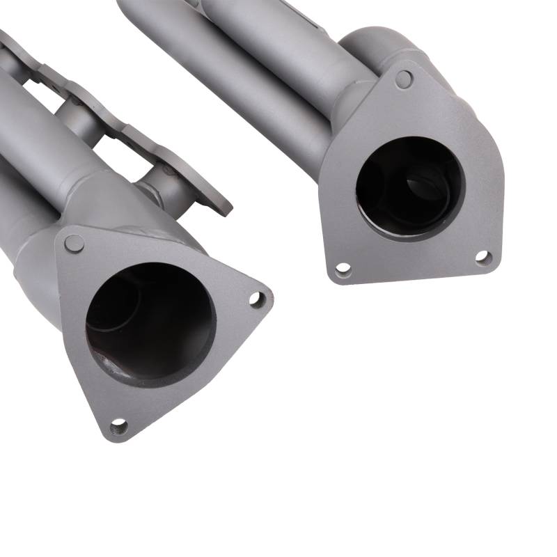 1999-2013 GM TRUCK/SUV 6.0L 1-3/4 SHORTY HEADERS (TITANIUM CERAMIC) These BBK Performance shorty tuned Length exhaust Headers are designed and constructed as direct fit replacements for all 99-13 GM Truck and SUV 6.0L applications. Each header is manufactured with 1-5/8" CNC mandrel bent tubing that offers unrestricted exhaust flow for increased horsepower and torque over factory OEM manifolds. BBK tuned Length headers offer improved scavenging waves for better combustion, which leads to improved performance and fuel economy over stock or equal Length headers. As with all BBK Performance exhaust headers they feature a 3/8" laser cut header flange for additional strength and a guaranteed leak free fit. All headers are robotically and precision hand welded and then pressure tested to ensure years of reliability and performance in the real world. All BBK exhaust headers are available in a titanium ceramic or polished silver ceramic coated finish and include new exhaust header gaskets, header bolts and hardware to complete the installation