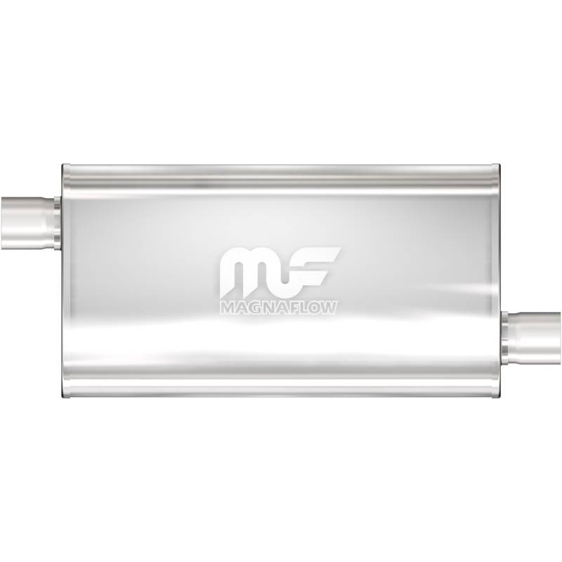 Straight-Through Performance Muffler; 3in. Offset/Offset; 5x22x11 Body The MagnaFlow 5 X 11in. Oval Straight-Through Performance Exhaust Muffler 12578 is engineered to enhance your ride with a healthy helping of our signature exhaust sound and dyno-proven performance thanks to its free-flowing straight-through perforated stainless steel core wrapped in stainless steel mesh and acoustic fiber fill. The reversible, universal 3/3in. diameter inlet/outlet Straight-Through layout allows you to install it in whatever orientation and configuration you see fit. However, professional installation is highly recommended. Muffler 12578s weight-optimized 5x11x22in. oval-shaped body features a satin finish that elevates the overall aesthetics of your current exhaust setup. 12578 is made of durable, corrosion resistant stainless steel and produced using cutting-edge CNC precision robotic manufacturing techniques, all backed by MagnaFlow's limited lifetime construction warranty. Delivers a Smooth, Deep Tone Mufflers are Bi-Directional 100% Stainless Steel