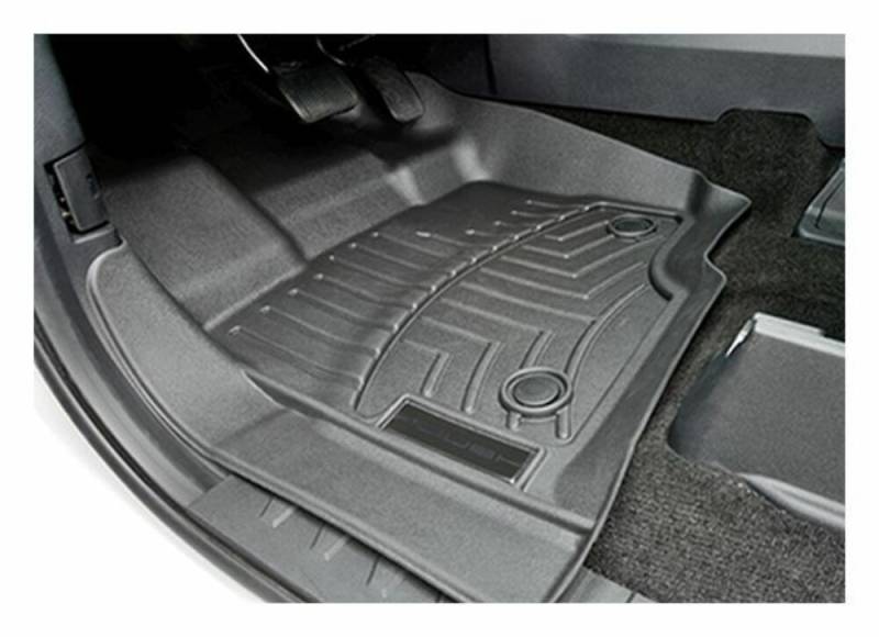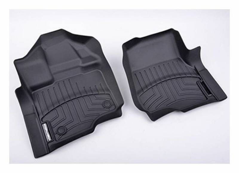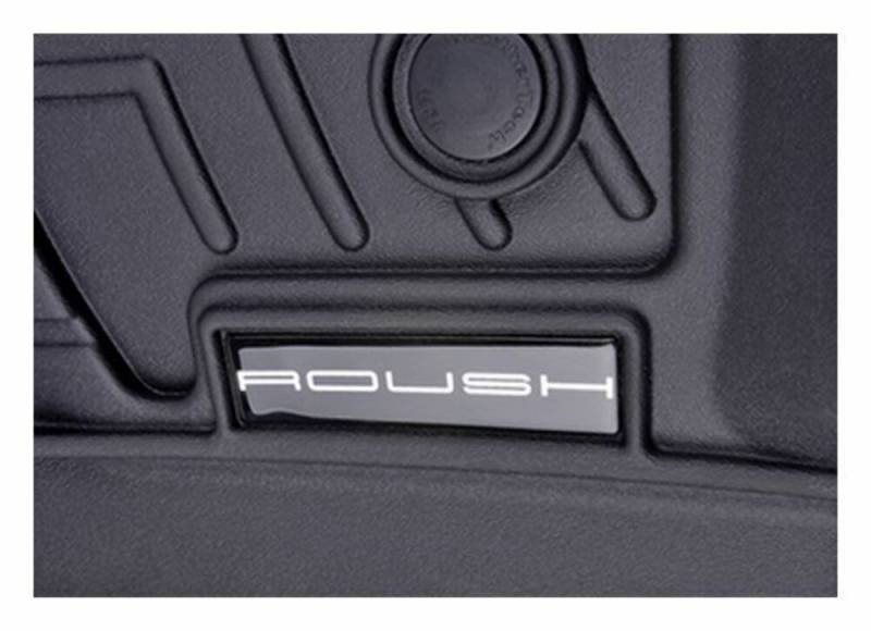 Protect the interior of your 2015-2023 F-150 with our ROUSH WeatherTech Floor Mats. These revolutionary floor mats are laser molded to line the interior carpet of your truck perfectly, and feature the classic ROUSH logo. Front, back, and even the sides of the vehicle's footwells are fully protected from fluids and debris. Advanced surfacing creates channels that carry fluids and debris to a lower reservoir with further channeling to help minimize fluid movement while driving! Once fluids become trapped in the reservoir, away from shoes and clothing, they are easily removed from the WeatherTech FloorLiner™ DigitalFit over the door sill.