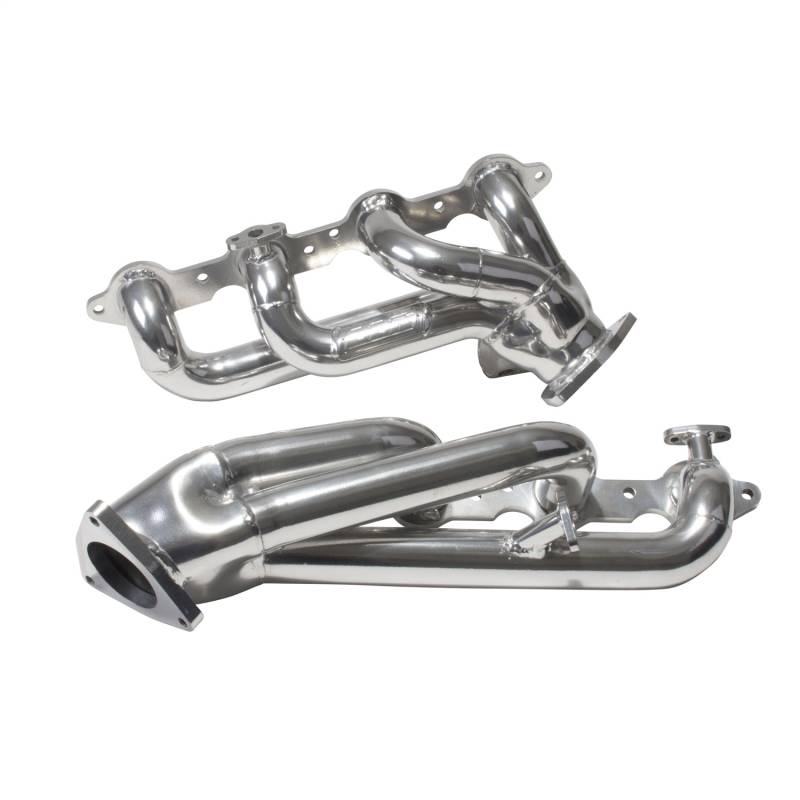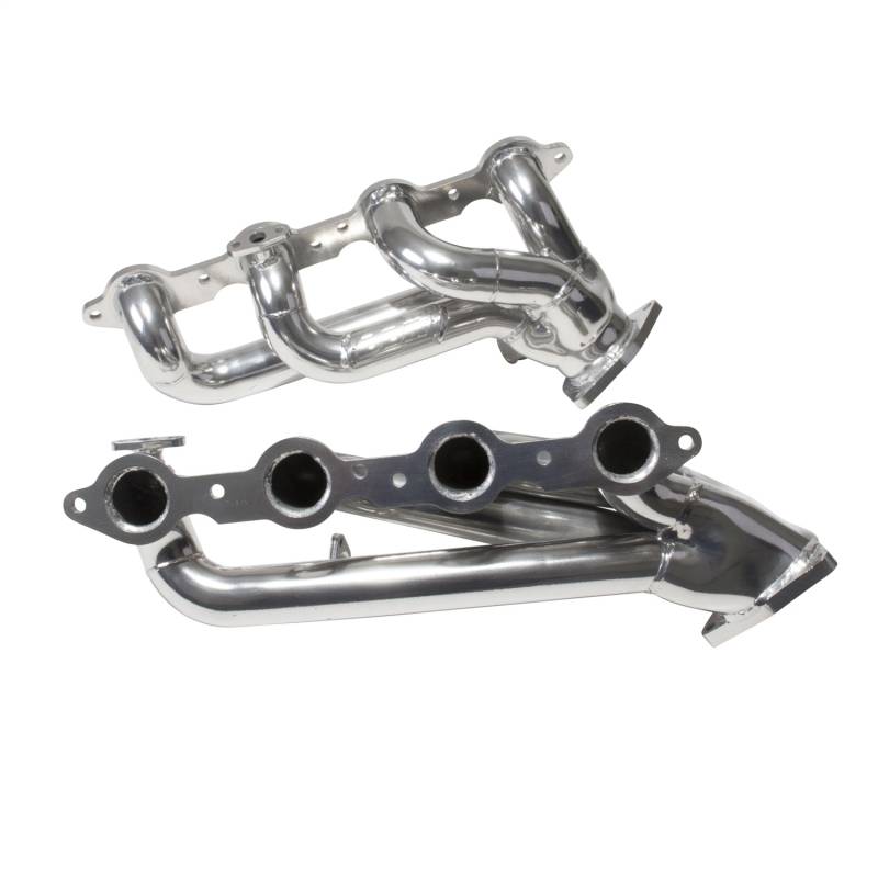 1999-2013 GM TRUCK/SUV 4.8L/5.3L 1-3/4 SHORTY HEADERS (POLISHED SILVER CERAMIC) These BBK Performance shorty tuned Length exhaust Headers are designed and constructed as direct fit replacements for all 99-04 GM Truck and SUV 4.8L and 5.3L applications. Each header is manufactured with 1-5/8" CNC mandrel bent tubing that offers unrestricted exhaust flow for increased horsepower and torque over factory OEM manifolds. BBK tuned Length headers offer improved scavenging waves for better combustion, which leads to improved performance and fuel economy over stock or equal Length headers. As with all BBK Performance exhaust headers they feature a 3/8" laser cut flange for additional strength and a guaranteed leak free fit. All headers are robotically and precision hand welded and then pressure tested to ensure years of reliability and performance in the real world. All BBK exhaust headers are available in a Titanium Ceramic or polished silver ceramic coated finish and include new exhaust header gaskets, header bolts and hardware to complete the installation. IMPORTANT NOTE: On The passenger side OE Manifold you must remove the factory OE doughnut gasket and reinstall on the BBK passenger side header so the mid pipe will bolt up and seal Polished Silver Ceramic Finish - All New Gaskets & Hardware Included Direct Bolt On - 50 State Legal