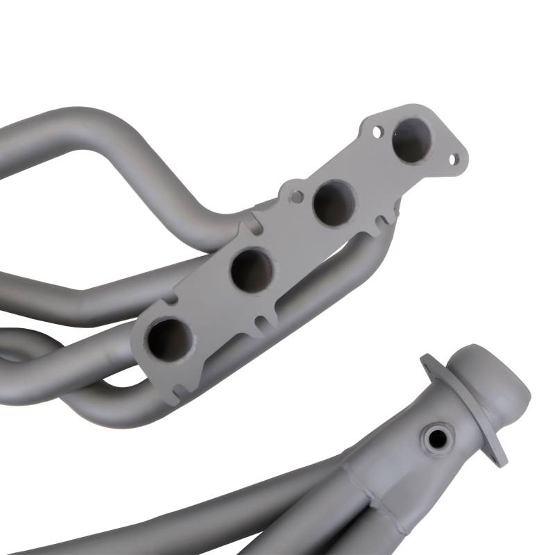 1986-2004 MUSTANG COYOTE SWAP 1-3/4" LONG TUBE HEADERS (TITANIUM CERAMIC) Specifically designed for Coyote swaps in a Fox body or SN95 Mustang 1987-2004 - These BBK Performance 1-3/4 inch full length long tube exhaust headers offer unsurpassed quality and fitment using top quality materials and American craftsmanship. Every long tube exhaust header system is hand built with CNC mandrel bent tubing for unrestrictive exhaust flow and maximum performance, 3/8" laser cut flanges, patented scavenging collector design and gasket less ball and socket connectors for easy installation. Every exhaust header has been designed specifically for your application to get the most horsepower and torque out of the engine. BBK long tube exhaust headers outperform the competition in quality value and performance. All headers are a direct fit bolt on replacement when used with the correct matching mid-pipes which are available with high flow catalytic converters. Our decades of exhaust design and experience make BBK Performance your number one choice for late model American car and truck performance exhaust. Requires Mid Pipe Part# 1786 and O2 harness extensions to complete install Fits Manual Transmission ONLY - Includes New Gaskets And Hardware For Installation - Titanium Ceramic Finish