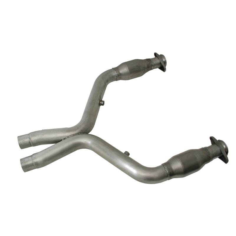 2011-2014 MUSTANG GT 3.0 SHORT MID X PIPE W/ CATALYTIC CONVERTERS BBK Performance short mid X pipes with high flow catalytic converters are specifically designed to be used with BBK full Length exhaust headers to complete the exhaust installation to your cars cat back exhaust system. This BBK mid pipe is designed and built with 3.00" CNC mandrel bent stainless tubing for maximum exhaust flow and high flow catalytic converters. All BBK mid pipes feature ball and socket style connectors for simple installation and adjustment for good ground clearance. The BBK merged X center section crossover is designed to maximize the exhaust flow potential of your Mustangs high performance engine to get the maximum horsepower and torque available to the ground. Every BBK mid X pipe offers performance, quality and value that guarantees years of top performance for your Mustang.
