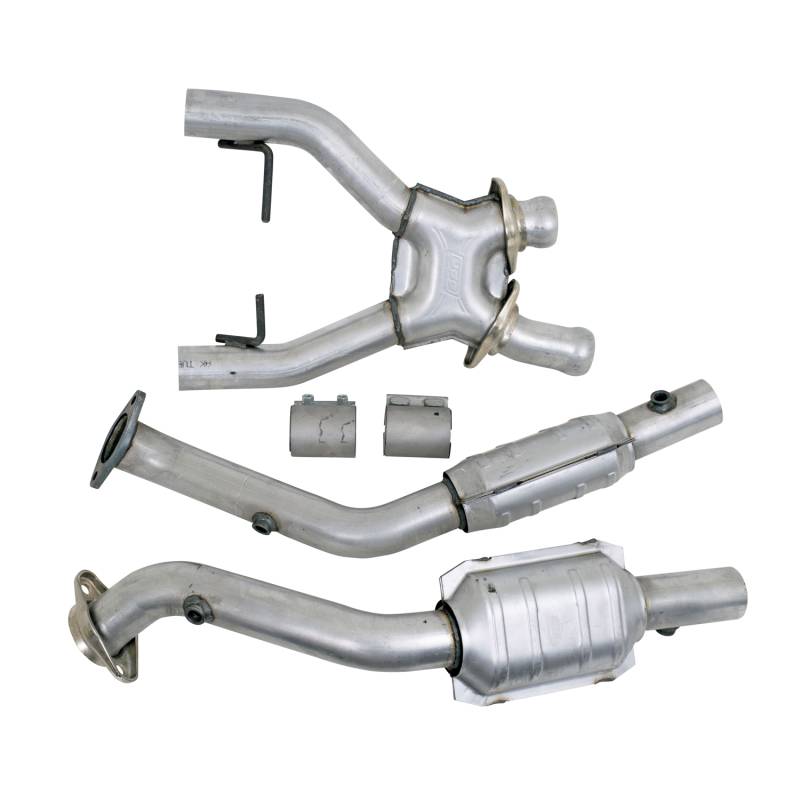 1996-1998 MUSTANG COBRA 4.6L 4V 2.5 FULL X PIPE W/CONVERTERS BBK High Flow performance X pipes are designed to maximize the horsepower and torque of your 1996-1998 Ford Mustang Cobra 4.6L 4V. Every BBK Performancec X pipe is designed as a direct replacement for the factory pipe and features larger diameter 16 gauge 2-1/2" CNC mandrel bent amuminized steel tubing with a unique BBK center X section for improved exhaust extraction, along with high flow catalytic converters to help increase exhaust flow and maximize performance to the rear wheels. These BBK full catted X pipes will install directly to the factory exhaust headers or any aftermarket shorty exhaust and feature factory O2 sensor placement for simple direct installation. A BBK catted X pipe is the best way to really improve your Mustangs exhaust flow over the restrictive factory pipe to increase overall performance, plus it will sound great with an additional V8 muscle car growl. Please Note. This BBK product is not legal for use in some states including California: Please check your local emission laws and requirements. High Flow Catalytic Converters For Maximum Exhaust Flow - 2-1/2 CNC Mandrel Pipes - Direct Fit Replacement