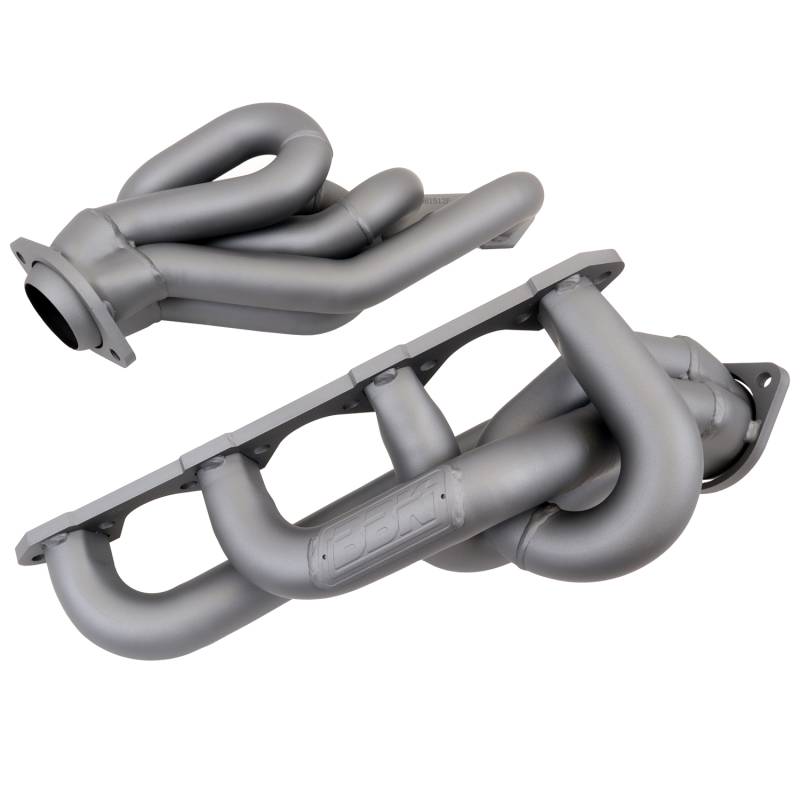 1986-1993 MUSTANG 5.0 1-5/8 SHORTY EQUAL LENGTH HEADERS (Titanium Ceramic) These BBK Performance shorty tuned Length exhaust Headers are designed and constructed as direct fit replacements for all 86-93 Mustang 5.0 applications. Each header is manufactured with 1-5/8" CNC mandrel bent tubing that offers unrestricted exhaust flow for increased horsepower and torque over factory OEM manifolds. BBK tuned Length headers offer improved scavenging waves for better combustion, which leads to improved performance and fuel economy over stock or equal Length headers. As with all BBK Performance exhaust headers they feature a 3/8" laser cut flange for additional strength and a guaranteed leak free fit. All headers are robotically and precision hand welded and then pressure tested to ensure years of reliability and performance in the real world. All BBK exhaust headers are available in Titanium Ceramic or polished silver ceramic coated finish and include new exhaust header gaskets, header bolts and hardware to complete the installation. Direct Fit For Use With Factory Or Aftermarket Mid Pipes - Increased Exhaust Flow for More Power