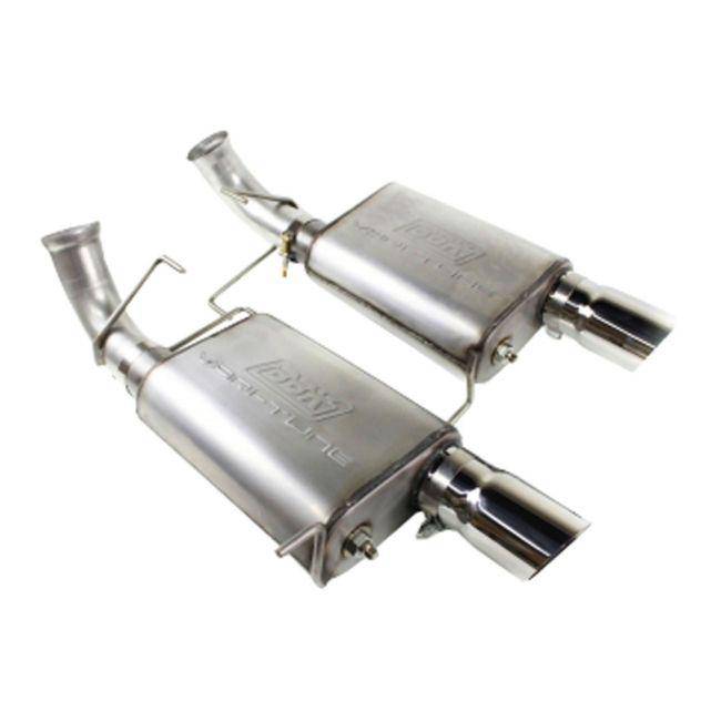 MUSTANG GT 5.0 VARITUNE AXLE BACK EXHAUST KIT (STAINLESS) These new BBK Varitune axle back exhaust systems feature BBK Varitune mufflers that have a patented adjustable power valve inside that allows full adjustment of the exhaust flow through the mufflers chambers for a great sound and added performance. This adjustment is made at the rear of the muffler with a wrench by either moving the valve in or out. Once you are happy with the level of sound, it is locked in place with the Varitune locking nut. All of the Varitune power valves are made with stainless steel for lasting durability and smooth operation. These patented BBK Varitune exhaust systems allow you to personalize the power and sound levels of your car 8-10 decibels and 10-15 horsepower. All kits are offered as direct bolt on replacements for the restrictive factory exhaust. Every Varitune exhaust kit includes BBK Varitune brushed stainless steel tips for impressive looks. Allows Fine Tuning of Sound and Power Level