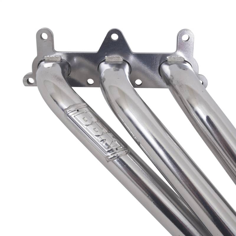2010-2011 CAMARO V6 1-5/8 LONG TUBE HEADERS W/CATS (POLISHED SILVER CERAMIC) BBK Performance full length long tube exhaust headers offer unsurpassed quality and fitment using top quality materials and American craftsmanship. Every long tube exhaust header system is hand built with CNC mandrel bent tubing for unrestrictive exhaust flow and maximum performance, 3/8" laser cut header flanges, patented scavenging collector design and gasket less ball and socket connectors for easy installation. Every exhaust header has been designed specifically for your application to get the most horsepower and torque out of the engine. BBK long tube exhaust headers outperform the competition in quality value and performance. All headers are a direct fit bolt on replacement when used with the correct matching mid-pipes which are included in this kit with high flow catalytic converters. Our decades of exhaust design and experience make BBK Performance your number one choice for late model American car and truck performance exhaust. Polished Silver Ceramic Finish - Direct fit bolt on replacements - Kits include new gaskets and hardware - increases of up to 30 additional horsepower