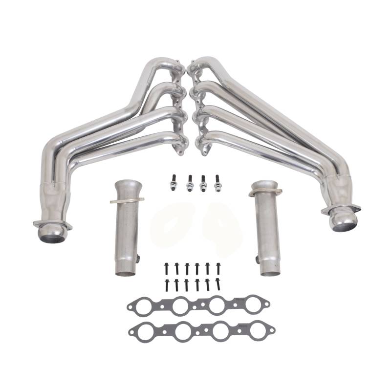 10-15 CAMARO LS3/L99 1-7/8 LONG TUBE HEADERS W/CATS (POLISHED SILVER CERAMIC) BBK Performance full length long tube exhaust headers offer unsurpassed quality and fitment using top quality materials and American craftsmanship. Every long tube exhaust header system is hand built with CNC mandrel bent tubing for unrestrictive exhaust flow and maximum performance, 3/8" laser cut exhaust flanges, patented scavenging collector design and gasket less ball and socket connectors for easy installation. Every exhaust header has been designed specifically for your application to get the most horsepower and torque out of the engine. BBK long tube exhaust headers outperform the competition in quality value and performance. All headers are a direct fit bolt on replacement when used with the correct matching mid-pipes which are available with high flow catalytic converters. Our decades of exhaust design and experience make BBK Performance your number one choice for late model American car and truck performance exhaust. Polished Silver Ceramic Finish - 1-7/8" Mandrel Bent Primary Tubes for unrestricted exhaust flow and maximum performance. Direct Replacement headers, kit Includes High Flow Catalytic converters