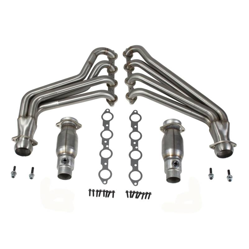 2010-15 CAMARO 6.2 SS 1-3/4 LONG TUBE HEADERS W/CATS (304 STAINLESS) BBK Performance full length long tube exhaust headers offer unsurpassed quality and fitment using top quality materials and American craftsmanship. These long tube exhaust header system are hand built with CNC mandrel bent 304 stainless steel tubing for unrestrictive exhaust flow and maximum performance, 3/8" laser cut flanges, patented scavenging collector design and gasket less ball and socket connectors for easy installation. Every exhaust header has been designed specifically for your application to get the most horsepower and torque out of the engine. BBK long tube exhaust headers outperform the competition in quality value and performance. All headers are a direct fit bolt on replacement when used with the correct matching mid-pipes with high flow catalytic converters which are included in this kit. Our decades of exhaust design and experience make BBK Performance your number one choice for late model American car and truck performance exhaust. 304 Stainless Steel - Direct Bolt On - Kit Includes High Flow Catalytic Converters - New Gaskets and Hardware are included