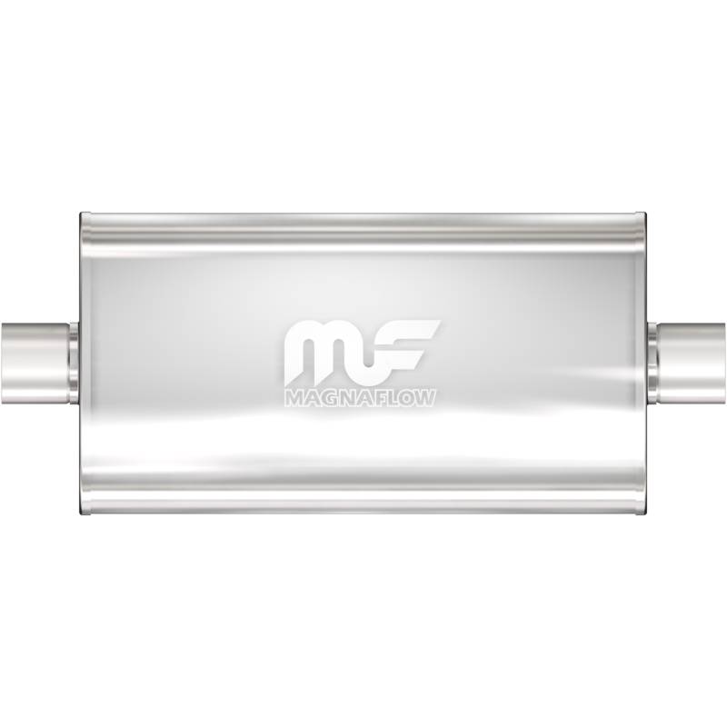 Straight-Through Performance Muffler; 3in. Center/Center; 5x22x11 Body The MagnaFlow 5 X 11in. Oval Straight-Through Performance Exhaust Muffler 12579 is engineered to enhance your ride with a healthy helping of our signature exhaust sound and dyno-proven performance thanks to its free-flowing straight-through perforated stainless steel core wrapped in stainless steel mesh and acoustic fiber fill. The reversible, universal 3/3in. diameter inlet/outlet Straight-Through layout allows you to install it in whatever orientation and configuration you see fit. However, professional installation is highly recommended. Muffler 12579s weight-optimized 5x11x22in. oval-shaped body features a satin finish that elevates the overall aesthetics of your current exhaust setup. 12579 is made of durable, corrosion resistant stainless steel and produced using cutting-edge CNC precision robotic manufacturing techniques, all backed by MagnaFlow's limited lifetime construction warranty. Delivers a Smooth, Deep Tone Mufflers are Bi-Directional 100% Stainless Steel