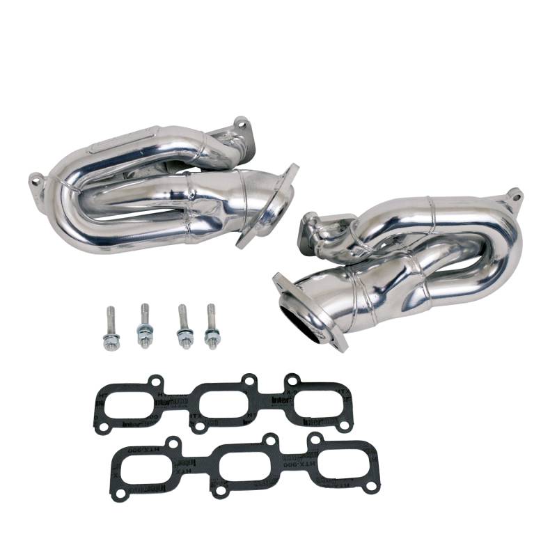 2011-2017 MUSTANG 3.7L V6 1-5/8 SHORTY EXHAUST HEADERS (Polished Silver Ceramic) These BBK Performance shorty tuned Length exhaust Headers are designed and constructed as direct fit replacements for all 2011-2017 Ford Mustang 3.7L V6 applications. Each header is manufactured with 1-5/8" CNC mandrel bent tubing that offers unrestricted exhaust flow for increased horsepower and torque over factory OEM manifolds. BBK tuned Length headers offer improved scavenging waves for better combustion, which leads to improved performance and fuel economy over stock or equal Length headers. As with all BBK Performance exhaust headers they feature a 3/8" laser cut flange for additional strength and a guaranteed leak free fit. All headers are robotically and precision hand welded and then pressure tested to ensure years of reliability and performance in the real world. All BBK exhaust headers are available in a bright chrome or polished silver ceramic coated finish and include new exhaust header gaskets, header bolts and hardware to complete the installation. Designed as a direct fit for ALL 2011-17 Ford Mustang 3.7L V6 Applications - Polished Silver Ceramic Finish