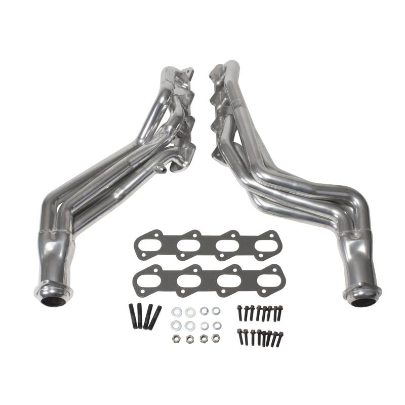 1999-2004 MUSTANG COBRA/MACH1 LONG TUBE 1-5/8 HEADERS (POLISHED SILVER CERAMIC) BBK Performance full length long tube exhaust headers offer unsurpassed quality and fitment using top quality materials and American craftsmanship. Every long tube exhaust header system is hand built with CNC mandrel bent tubing for unrestrictive exhaust flow and maximum performance, 3/8" laser cut flanges, patented scavenging collector design and gasket less ball and socket connectors for easy installation. Every exhaust header has been designed specifically for your application to get the most horsepower and torque out of the engine. BBK long tube exhaust headers outperform the competition in quality value and performance. All headers are a direct fit bolt on replacement when used with the correct matching mid-pipes which are available with high flow catalytic converters. Our decades of exhaust design and experience make BBK Performance your number one choice for late model American car and truck performance exhaust. Polished Silver Ceramic Finish - OE EGR Fittings - Requires Mid Pipe 1538 or 1638