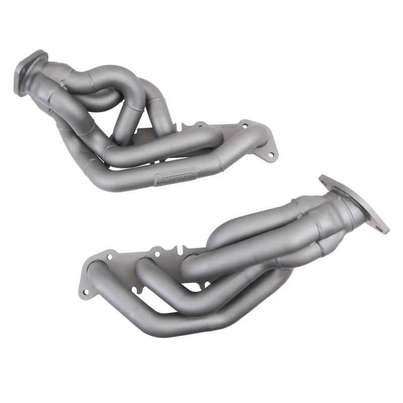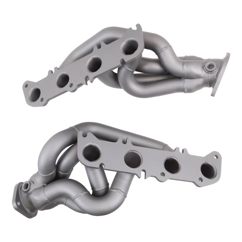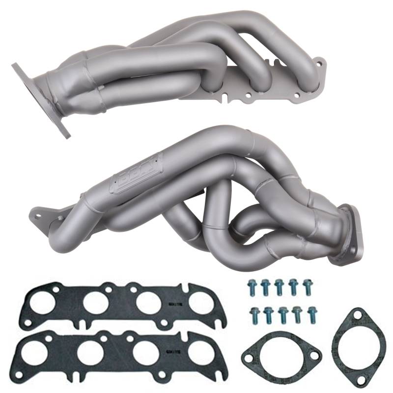 2011-2014 MUSTANG GT 1-3/4 TUNED LENGTH EXHAUST HEADERS (TITANIUM CERAMIC) These BBK Performance shorty tuned Length exhaust Headers are designed and constructed as direct fit replacements for all 11-14 Mustang GT applications. Each header is manufactured with 1-5/8" CNC mandrel bent tubing that offers unrestricted exhaust flow for increased horsepower and torque over factory OEM manifolds. BBK tuned Length headers offer improved scavenging waves for better combustion, which leads to improved performance and fuel economy over stock or equal Length headers. As with all BBK Performance exhaust headers they feature a 3/8" laser cut flange for additional strength and a guaranteed leak free fit. All headers are robotically and precision hand welded and then pressure tested to ensure years of reliability and performance in the real world. All BBK exhaust headers are available in a titanium ceramic or polished silver ceramic coated finish and include new exhaust header gaskets, header bolts and hardware to complete the installation. 50 State CARB Legal - Kit Includes New Gaskets And Hardware - Direct Bolt On Replacements For OE Headers - Titanium Ceramic Finish