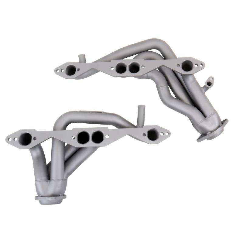 1993-1996 CHEVY IMPALA SS 1-5/8 SHORTY HEADERS (TITANIUM CERAMIC) These BBK Performance shorty tuned Length exhaust Headers are designed and constructed as direct fit replacements for all 93-96 Chevrolet Impala SS applications. Each header is manufactured with 1-5/8" CNC mandrel bent tubing that offers unrestricted exhaust flow for increased horsepower and torque over factory OEM manifolds. BBK tuned Length headers offer improved scavenging waves for better combustion, which leads to improved performance and fuel economy over stock or equal Length headers. As with all BBK Performance exhaust headers they feature a 3/8" laser cut flange for additional strength and a guaranteed leak free fit. All headers are robotically and precision hand welded and then pressure tested to ensure years of reliability and performance in the real world. All BBK exhaust headers are available in a high temp titanium ceramic or polished silver ceramic coated finish and include new exhaust header gaskets, header bolts and hardware to complete the installation. 50 State Legal - Direct Fit Replacement - Titanium High Temp Ceramic Finish