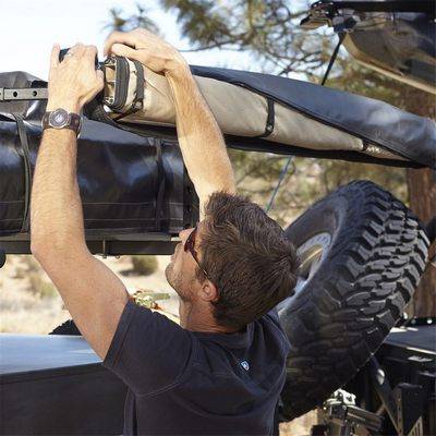 When you're setting up your base camp nothing is better than some much needed shade. Smittybilts retractable awning provides that shade, at 6.5 feet wide and 6.5 feet long it will provide all the shade you need. 6.5 ft. Wide x 6.5 ft. long Coyote tan 600D Oxford polyester Self contained aluminum twist lock poles Heavy duty cover included