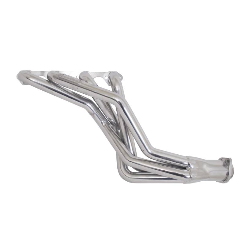 1979-93 MUSTANG 5.0 1-5/8 LONG TUBE HEADERS AUTOMATIC (POLISHED SILVER CERAMIC) BBK Performance full length long tube exhaust headers offer unsurpassed quality and fitment using top quality materials and American craftsmanship. Every long tube exhaust header system is hand built with CNC mandrel bent tubing for unrestrictive exhaust flow and maximum performance, 3/8" laser cut flanges, patented scavenging collector design and gasket less ball and socket connectors for easy installation. Every exhaust header has been designed specifically for your application to get the most horsepower and torque out of the engine. BBK long tube exhaust headers outperform the competition in quality value and performance. All headers are a direct fit bolt on replacement when used with the correct matching mid-pipes which are available with high flow catalytic converters and in off road race versions. Our decades of exhaust design and experience make BBK Performance your number one choice for late model American car and truck performance exhaust. Designed For AOD/E Transmission - Requires Mid Pipe Part# 1810 For Installation