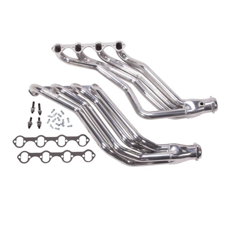 1979-1993 MUSTANG 5.0 1-3/4 LONG TUBE HEADERS (POLISHED SILVER CERAMIC) BBK Performance 1-3/4 full length long tube exhaust headers offer unsurpassed quality and fitment using top quality materials and American craftsmanship. Every long tube exhaust header system is hand built with CNC mandrel bent tubing for unrestrictive exhaust flow and maximum performance, 3/8" laser cut flanges, patented scavenging collector design and gasket less ball and socket connectors for easy installation. Every exhaust header has been designed specifically for your application to get the most horsepower and torque out of the engine. BBK long tube exhaust headers outperform the competition in quality value and performance. All headers are a direct fit bolt on replacement when used with the correct matching mid-pipes which are available with high flow catalytic converters. Our decades of exhaust design and experience make BBK Performance your number one choice for late model American car and truck performance exhaust. FIT Manual Transmission only 1-3/4 CNC Mandrel Bent Primary Tubes - Polished Silver Ceramic Finish - Fit Manual Transmission only
